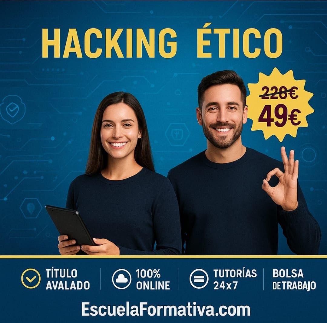 💻 Formación 100% online y actualizada 📈 Alta demanda de profesionales cualificados 🔐 Domina la seguridad informática coneste curso innovador 💥 Aprovecha nuestro precio especial limitado