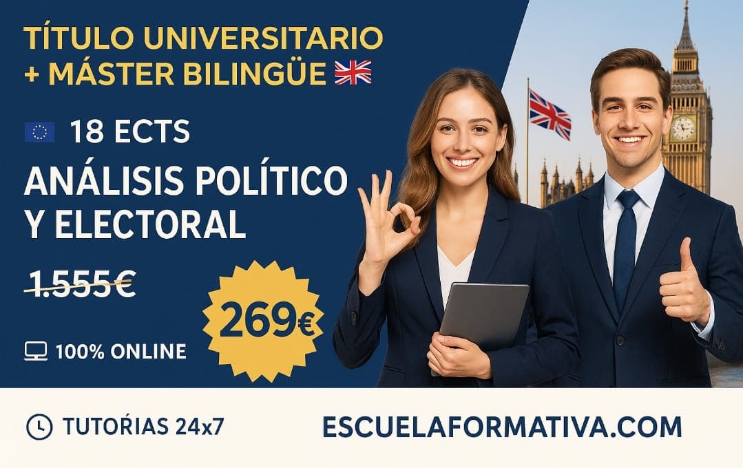 CURSO UNIVERSITARIO DE ESPECIALIZACIÓN EN ANÁLISIS POLÍTICO Y ELECTORAL (MODALIDAD BILINGÜE. 18 ECTS) + MÁSTER BILINGÜE EN ANÁLISIS POLÍTICO Y ELECTORAL (DOBLE TITULACIÓN)
