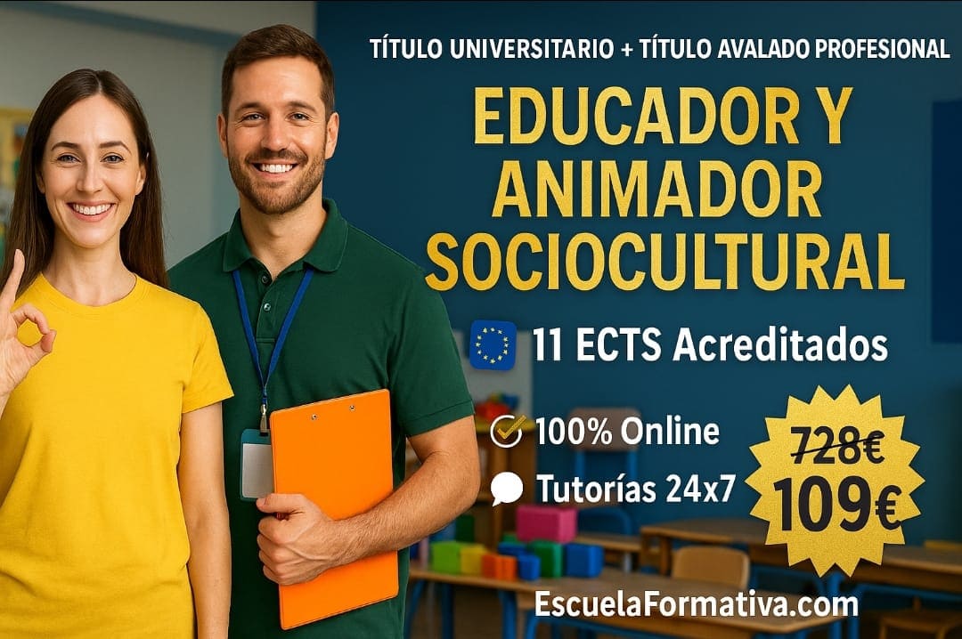 DOBLE TITULACIÓN ~ UNIVERSITARIA + PROFESIONAL: EDUCACIÓN Y ANIMACIÓN SOCIOCULTURAL (11 ECTS) + EDUCADOR Y ANIMADOR SOCIOCULTURAL