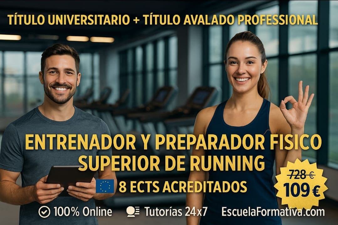 DOBLE TITULACIÓN ~ UNIVERSITARIA + PROFESIONAL: ENTRENAMIENTO Y PREPARACIÓN FÍSICA SUPERIOR DE RUNNING (8 ECTS) + ENTRENADOR Y PREPARADOR FÍSICO SUPERIOR DE RUNNING