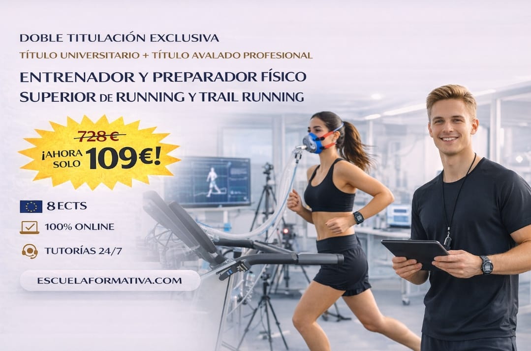 DOBLE TITULACIÓN ~ UNIVERSITARIA + PROFESIONAL: ENTRENAMIENTO Y PREPARACIÓN FÍSICA SUPERIOR DE RUNNING (8 ECTS) + ENTRENADOR Y PREPARADOR FÍSICO SUPERIOR DE RUNNING Y TRAIL RUNNING