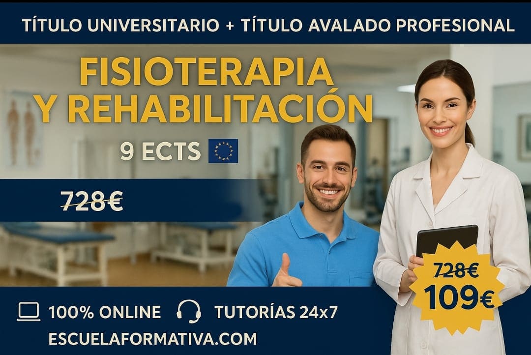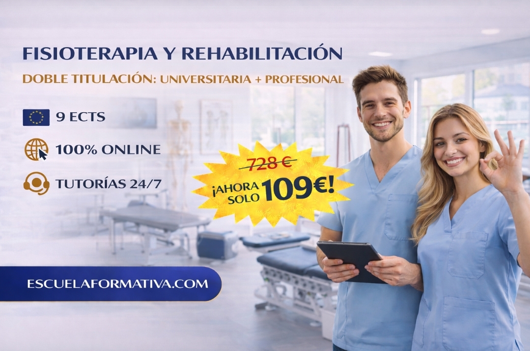 DOBLE TITULACIÓN_UNIVERSITARIA + PROFESIONAL: FISIOTERAPIA Y REHABILTACIÓN (9 ECTS) + TÉCNICO SUPERIOR PROFESIONAL EN ASISTENCIA EN FISIOTERAPIA Y REHABILITACIÓN