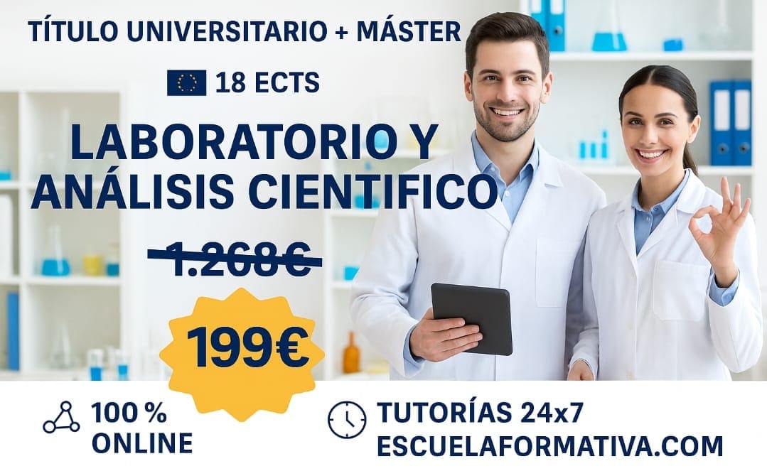 CURSO UNIVERSITARIO DE ESPECIALIZACIÓN EN LABORATORIO Y ANÁLISIS CIENTÍFICO AVANZADO (18 ECTS) + MÁSTER EN LABORATORIO Y ANÁLISIS CIENTÍFICO (DOBLE TITULACIÓN)