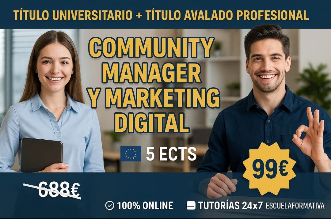 DOBLE TITULACIÓN_UNIVERSITARIA + PROFESIONAL: COMMUNITY MANAGER (5 ECTS) + COMMUNITY MANAGER Y MARKETING DIGITAL