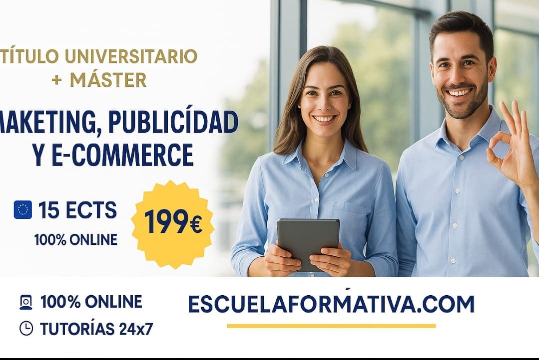 CURSO UNIVERSITARIO DE ESPECIALIZACIÓN EN MARKETING, PUBLICIDAD Y E-COMMERCE AVANZADO (15 ECTS) + MÁSTER EN MARKETING, PUBLICIDAD Y E-COMMERCE (DOBLE TITULACIÓN)