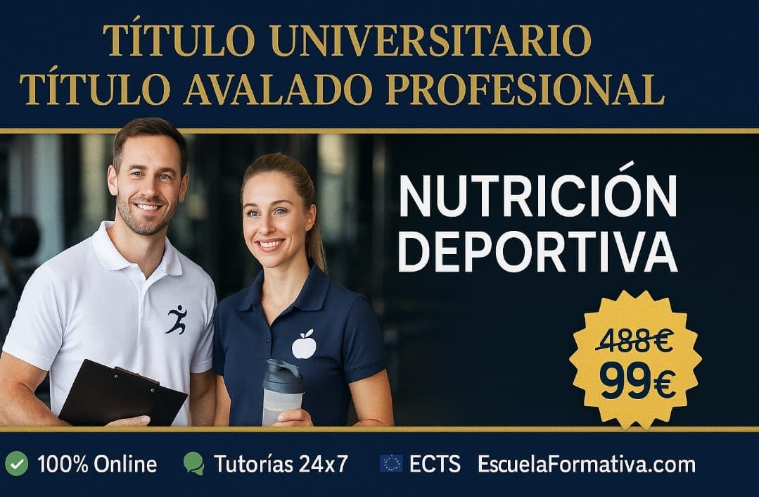 DOBLE TITULACIÓN ~ UNIVERSITARIA + PROFESIONAL: NUTRICIÓN DEPORTIVA (5 ECTS) + ESPECIALISTA EN NUTRICIÓN DEPORTIVA