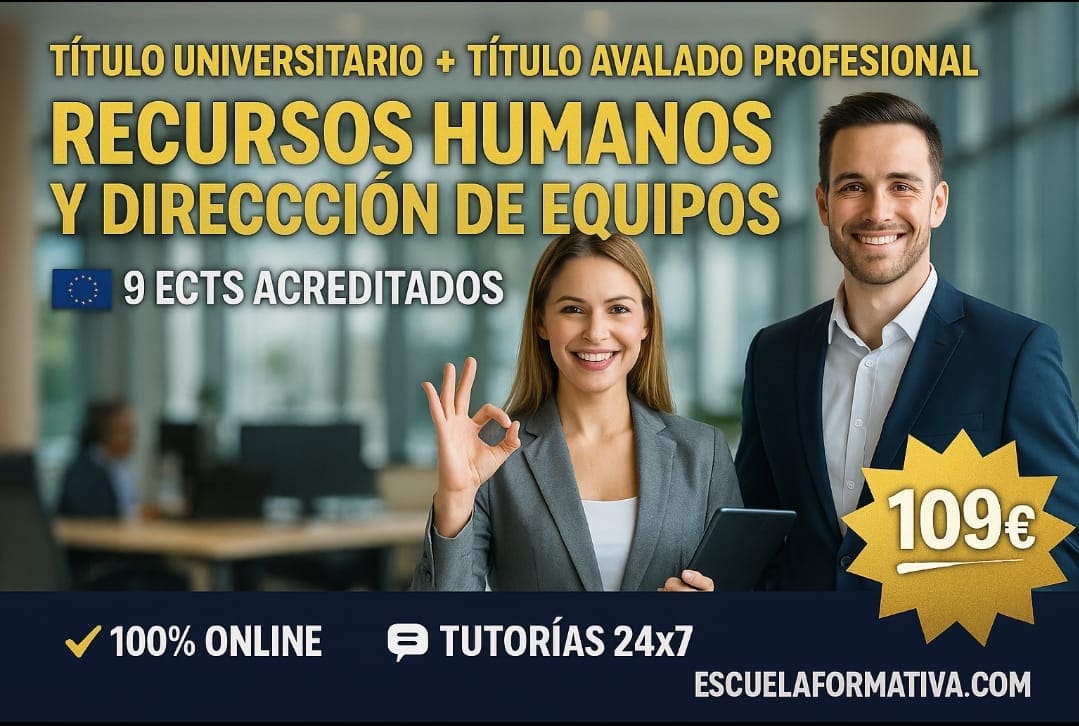 DOBLE TITULACIÓN ~ UNIVERSITARIA + PROFESIONAL: RECURSOS HUMANOS Y GESTIÓN DE EQUIPOS (9 ECTS) + TÉCNICO SUPERIOR PROFESIONAL EN RECURSOS HUMANOS Y GESTIÓN DE EQUIPOS