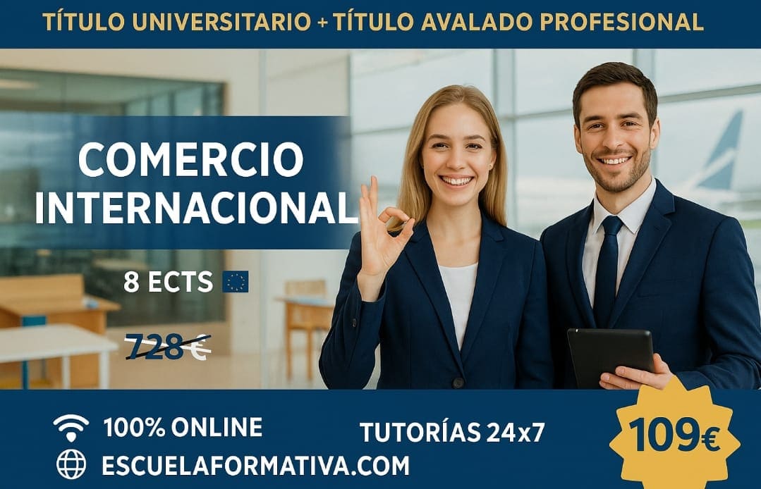 DOBLE TITULACIÓN_UNIVERSITARIA + PROFESIONAL: COMERCIO INTERNACIONAL (8 ECTS) + TÉCNICO SUPERIOR PROFESIONAL EN COMERCIO INTERNACIONAL